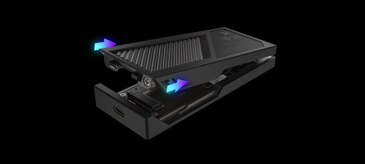 Корпус для SSD-накопителя 20 Гбит/с USB 3.2 Gen 2×2 с термостойким жидкосиликоновым покрытием и панелью мониторинга ROG SSD в реальном времени